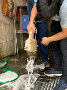 6️⃣ Sau khi ngâm xong, xả toàn bộ dung dịch ra ngoài.